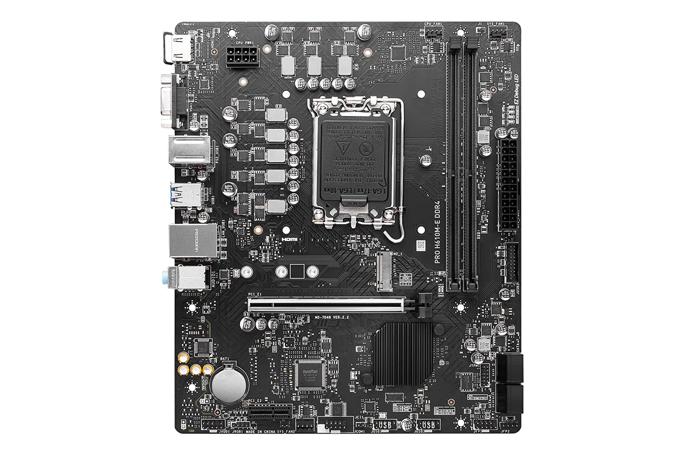 بسیاری از کاربران بهدنبال خرید مادربردهای هستند که در کنار عملکرد قابل قبول، قیمت مقرون بهصرفهای هم داشته باشند. مادربرد msi-H610 M-D D4 شرکت ام اس آی شاید در جایگاه یک مادربرد بالارده و پرچمدار قرار نگیرد، اما در جایگاه یک مادربرد میانرده، به مشخصات فنی مناسبی مجهز شده است که در نهایت توانایی ارائه عملکرد قابل قبولی را خواهد داشت. طراحی ساده این مادربرد در کنار متریال مناسب در ساخت سبب شده تا ظاهر کاربرد پسندی را با خود بههمراه داشته باشد. از جمله ویژگیهای کلیدی این مادربرد، توانایی پشتیبانی از پردازنده نسل 12 اینتل است. دو اسلات رم از نوع DDR4 برای این مادربرد در نظر گرفته شده که توانایی پشتیبانی از حداکثر ظرفیت 64 گیگابایت را دارند. یک اسلات PCIe x16 هم برای این مادربرد در نظر گرفته شده که با توجه به متریال مناسب، در طول عمر مفید کارتگرافیکی که قرار است از آن استفاده کنید تاثیر بالایی دارد. در بخش چیپست هم شاهد حضور Intel H610 هستیم که در جایگاه یک چیپست میانرده، عملکرد خوب و قابل قبولی خواهد داشت. در بخش پنل پشتی هم بهنسبت تعداد درگاههای متعدد البته متنوعی را شاهد هستیم که امکان اتصال آسان با دستگاههای دیگر را فراهم کرده است.